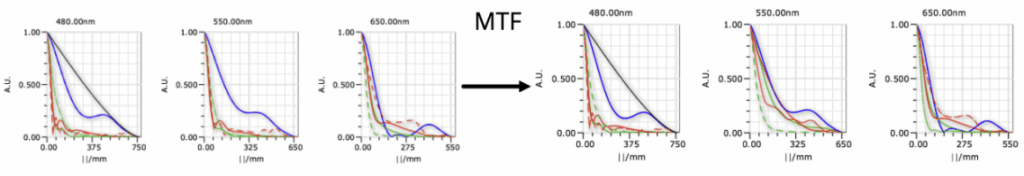 Figure 9. MTF impact for MSF surface on a surface. 550nm has the largest impact of the three wavelengths